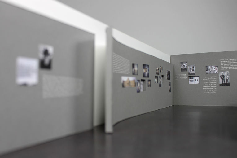 Auf gestalterischer Ebene wurde vor allem das graue Band in „News From The Unmentionable“ weitergezogen. Auch weitere Raumelemente wie die Treppe oder die brechenden Rundungen erinnern an die Originalausstellung. Dabei wurden die geradlinigen Strukturen des Brunswicker Pavillons jedoch noch weiter aufgebrochen – die Formen schneiden ein und lösen auf. Als Vorlage dienten dabei nicht nur Elemente aus dem Brooklyn Museum sondern auch bekannte Zensurmittel wie Balken, Pixel, Schwärzungen oder Unschärfe. Man darf sich auf die Suche machen, wo man diese entdeckt.